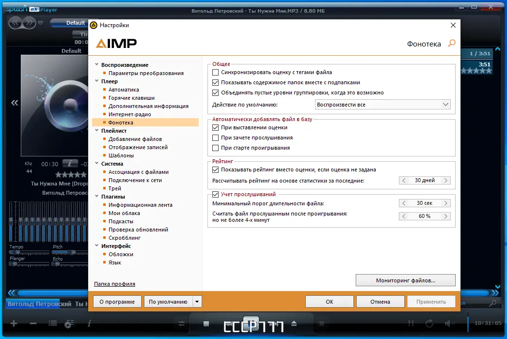 - Встроенные утилиты: конвертер, редактор тегов, CD-риппер и рекордер интернет-радио