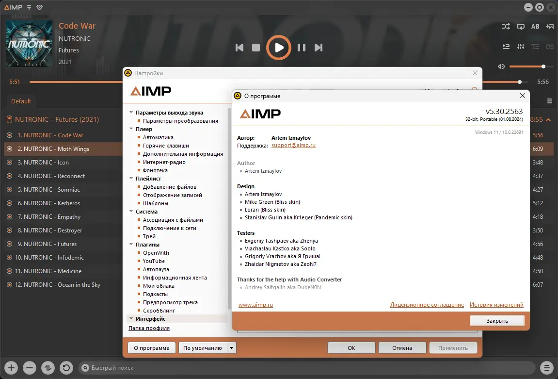 AIMP — это мощный аудиоплеер с расширенным набором инструментов для воспроизведения, конвертации и управления музыкальными файлами. Поддерживает более 90 форматов, включая редкие и высококачественные, и не требует установки дополнительных кодеков. Программа предлагает продвинутую обработку звука, поддержку ASIO и WASAPI, встроенный эквалайзер и модули для редактирования тегов, записи радио и создания плейлистов.