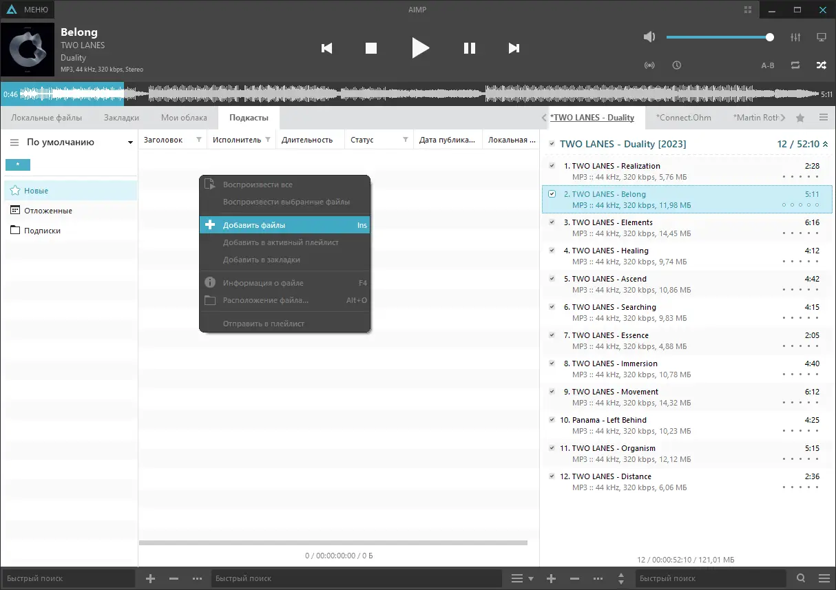 Работа с AIMP интуитивно понятна: после запуска можно сразу добавлять музыку через проводник или перетаскиванием файлов в окно программы. Плеер автоматически распознаёт теги, форматы и структуру папок. Через встроенный редактор тегов легко изменить информацию о треках, переименовать файлы по шаблону или транслитерировать названия. Фонотека помогает систематизировать коллекцию, а смарт-плейлисты обновляются автоматически при добавлении новых композиций. Для расширения функционала доступны сторонние плагины, включая интеграцию с Last.fm и облачными сервисами.