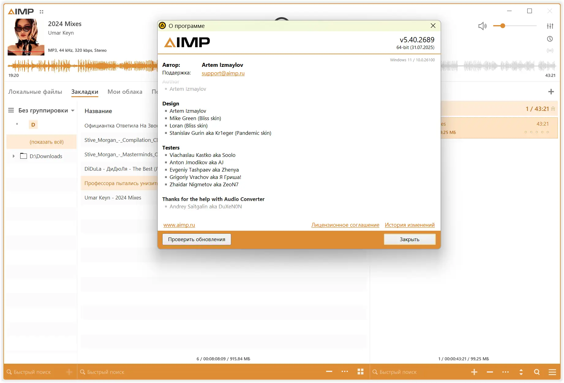 AIMP — это проверенный временем проигрыватель, который продолжает развиваться, сохраняя свою основную философию: простота, стабильность и высокая производительность. Программа поддерживает широкий спектр аудиоформатов, включая редкие и высококачественные, такие как FLAC, DSD, Opus, TTA и другие. Благодаря использованию современных технологий вывода звука — DirectSound, ASIO, WASAPI и WASAPI Exclusive — плеер обеспечивает чистое и детализированное воспроизведение без искажений.