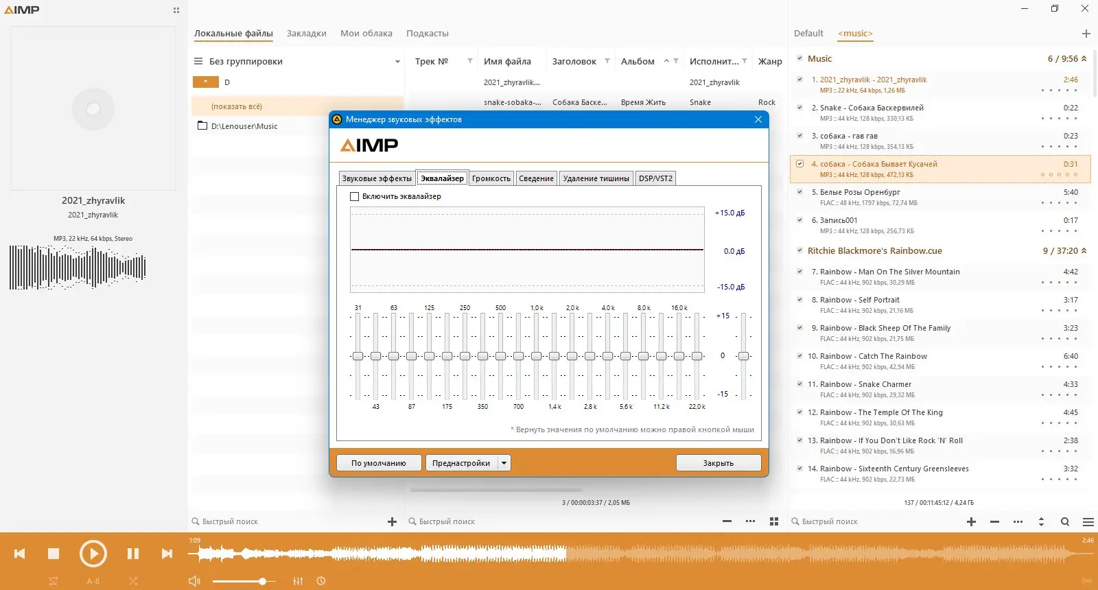 - Глубокая настройка звука: эквалайзер, аудиоэффекты, поддержка ASIO.
