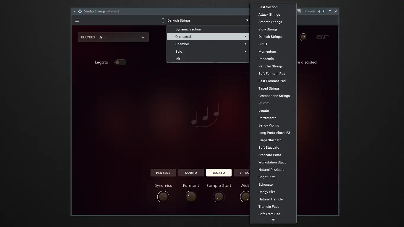 Studio Strings от AIR Music Technology — это инструмент для создания реалистичных струнных аранжировок с высокой детализацией звука. Программа включает более 1 ГБ записанных образцов, 100 пресетов и четыре модели инструментов: скрипку, альт, виолончель и контрабас. Благодаря широкому выбору артикуляций и эффектов, пользователь может создавать как симфонические композиции, так и современные музыкальные треки с оркестровым колоритом.