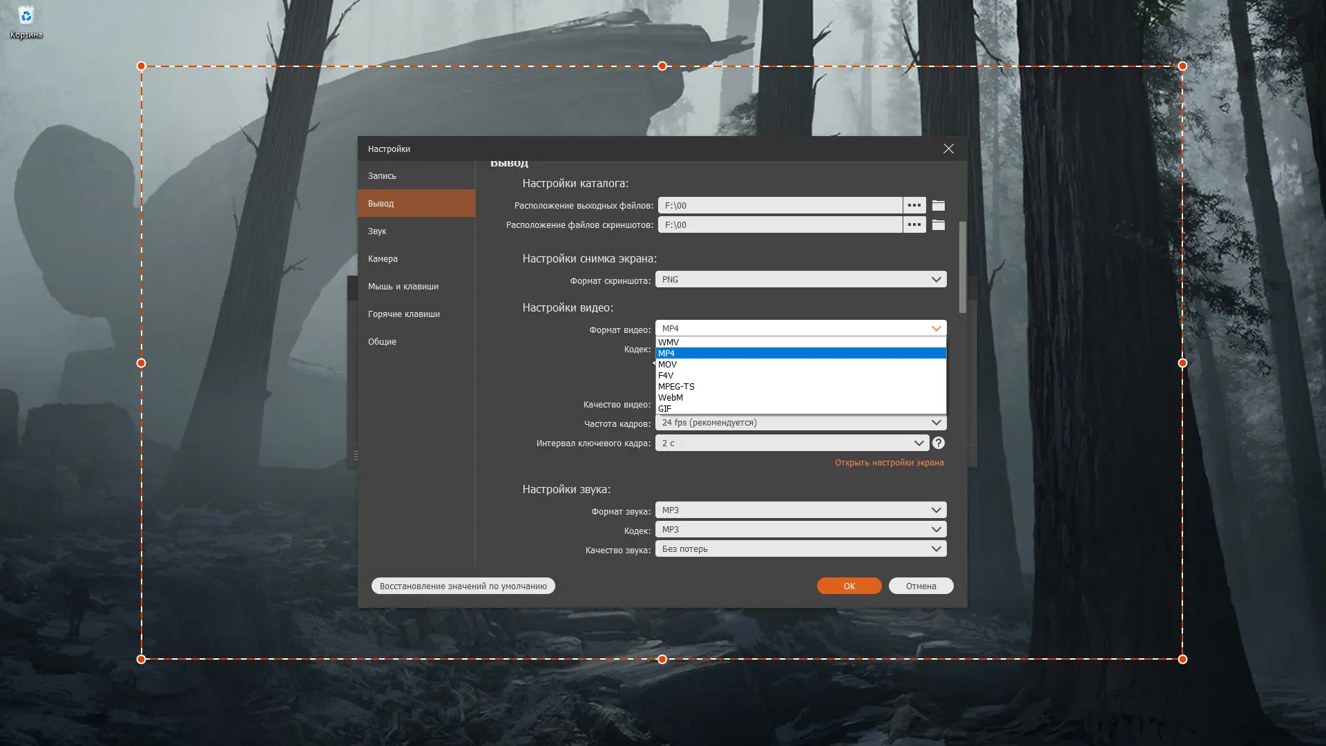- Возможность сохранять записи в популярных форматах, включая MP4, AVI, MOV, GIF и другие.