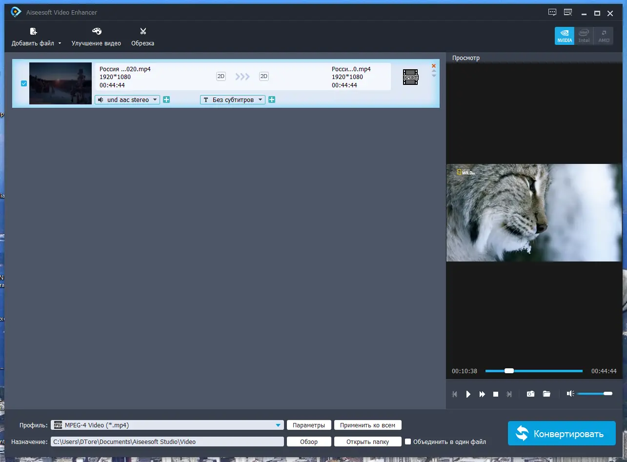 - Функция аппаратного ускорения через видеокарты nVIDIA, AMD и ATI значительно сокращает время обработки и кодирования видео.
