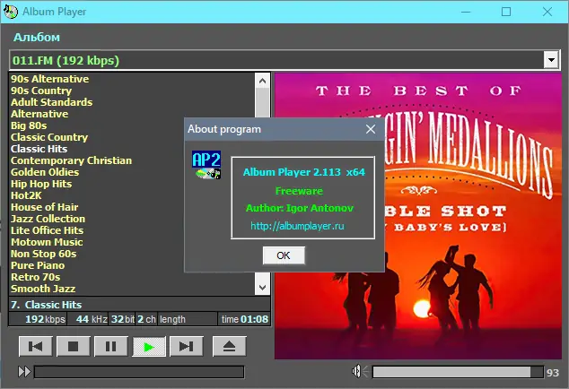Программа доступна для бесплатного использования, последняя версия 2.114 может быть найдена на официальный сайт. Там же размещена информация о совместимости, системных требованиях и руководство по эксплуатации. Скачать Album Player можно без регистрации, включая портативную версию, не требующую инсталляции. Официальный сайт последняя версия предоставляет в стабильной и проверенной сборке.