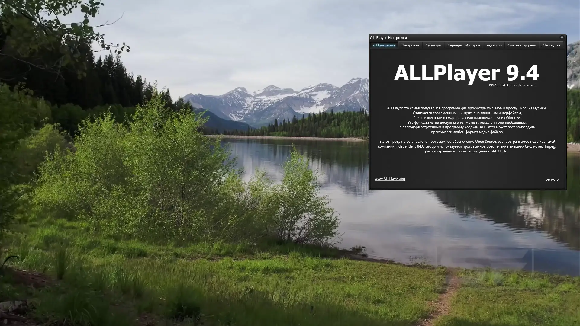 ALLPlayer — это многофункциональный медиапроигрыватель с поддержкой широкого спектра форматов, встроенной загрузкой субтитров, воспроизведением потокового контента и улучшенным отображением видео. Программа совместима с современными стандартами, включая 4K Ultra HD и WebM, и предлагает продвинутые настройки аудио и видео. Интерфейс интуитивно понятен, а функционал адаптирован как для домашнего, так и для профессионального использования.