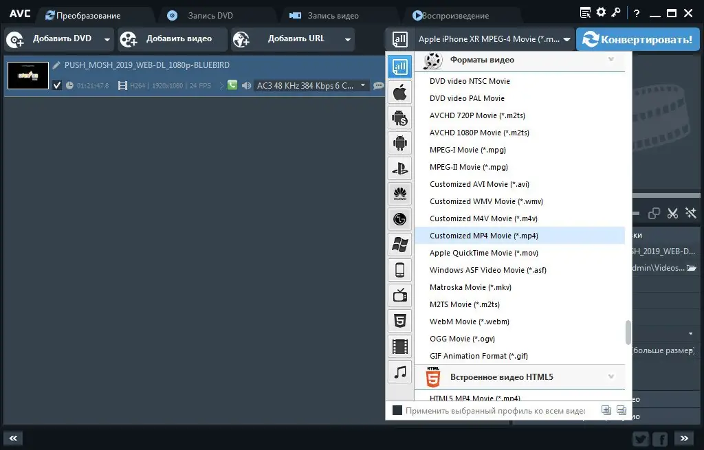 - Конвертация контента для устройств Apple, Samsung, Sony, Nintendo и других производителей.