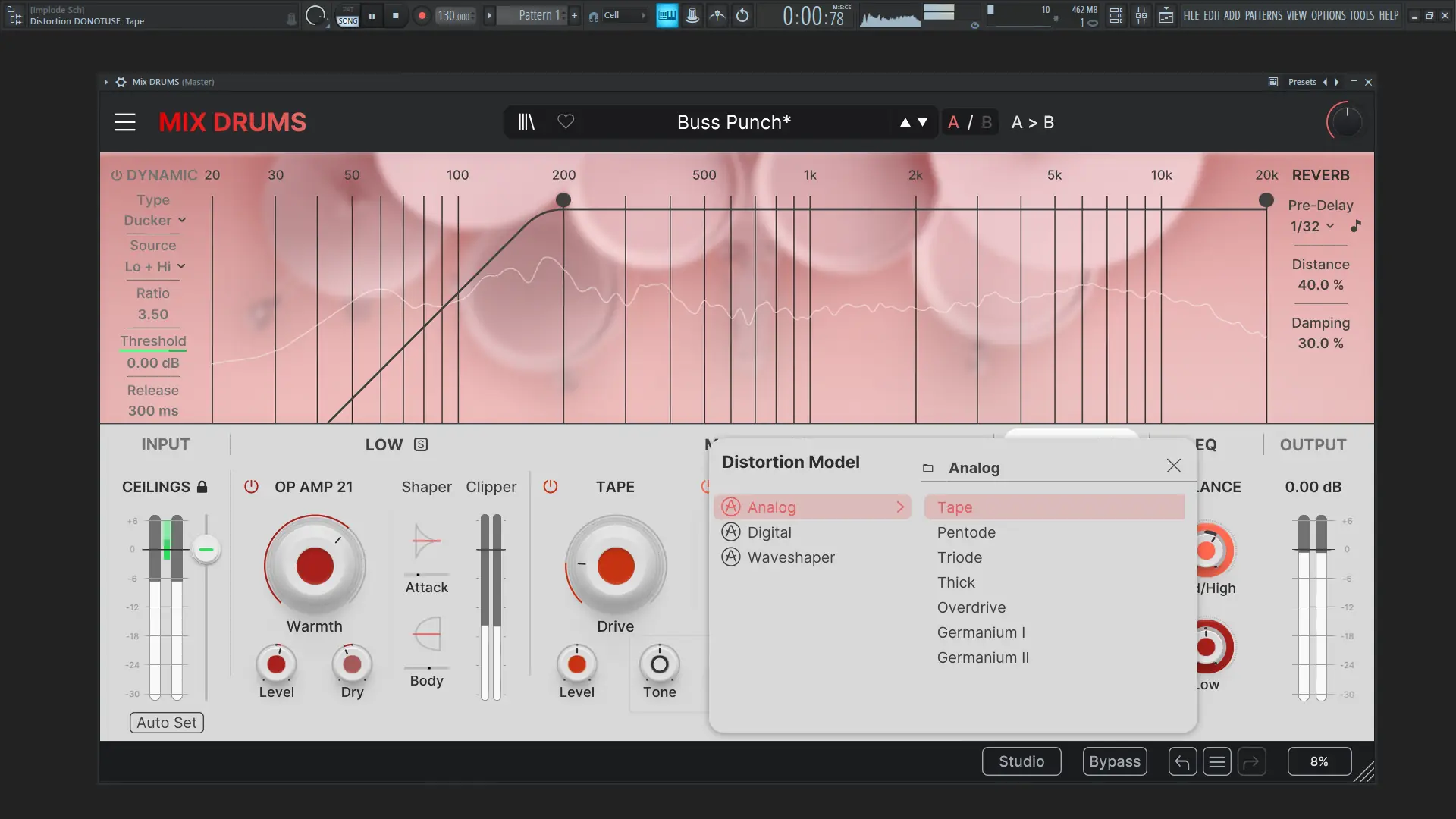 Плагин использует запатентованную технологию восстановления высоких частот, позволяя сохранить чёткость хай-хэтов и тарелок даже после агрессивной обработки.