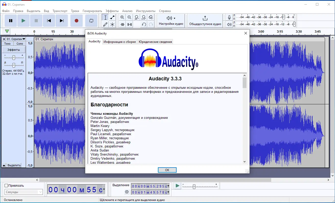 Audacity — это свободный аудиоредактор с открытым исходным кодом, предназначенный для записи, редактирования и обработки звука на различных операционных системах. Программа поддерживает широкий спектр форматов, включая WAV, MP3, Ogg Vorbis и AIFF, а также позволяет выполнять сложные операции, такие как шумоподавление, изменение темпа и высоты тона, многодорожечное сведение и анализ спектра. С её помощью можно оцифровывать аналоговые записи, создавать подкасты, редактировать голос и выполнять множество других задач в области цифровой обработки аудио.