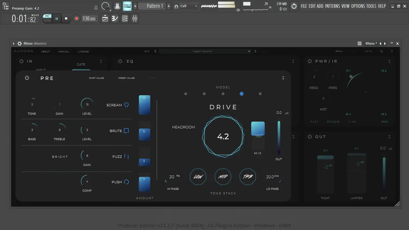Работа с Aurora DSP начинается с загрузки плагина в хост-приложение, совместимое с форматами VST3 или AAX. После запуска пользователь видит основное окно, разделённое на семь функциональных блоков: входной фильтр, преамп, дисторшн, модуляция, задержка, реверберация и выходной эквалайзер. Каждый блок можно включать, отключать или расширять для доступа к дополнительным настройкам. Например, в секции дисторшна доступны модели различных усилителей, включая классические ламповые и современные транзисторные схемы. Параметры таких эффектов, как глубина фленжера или время задержки, можно модулировать с помощью LFO или MIDI-контроллеров. Сохранение пресетов происходит в пользовательской библиотеке, что ускоряет процесс подбора звука в будущем.