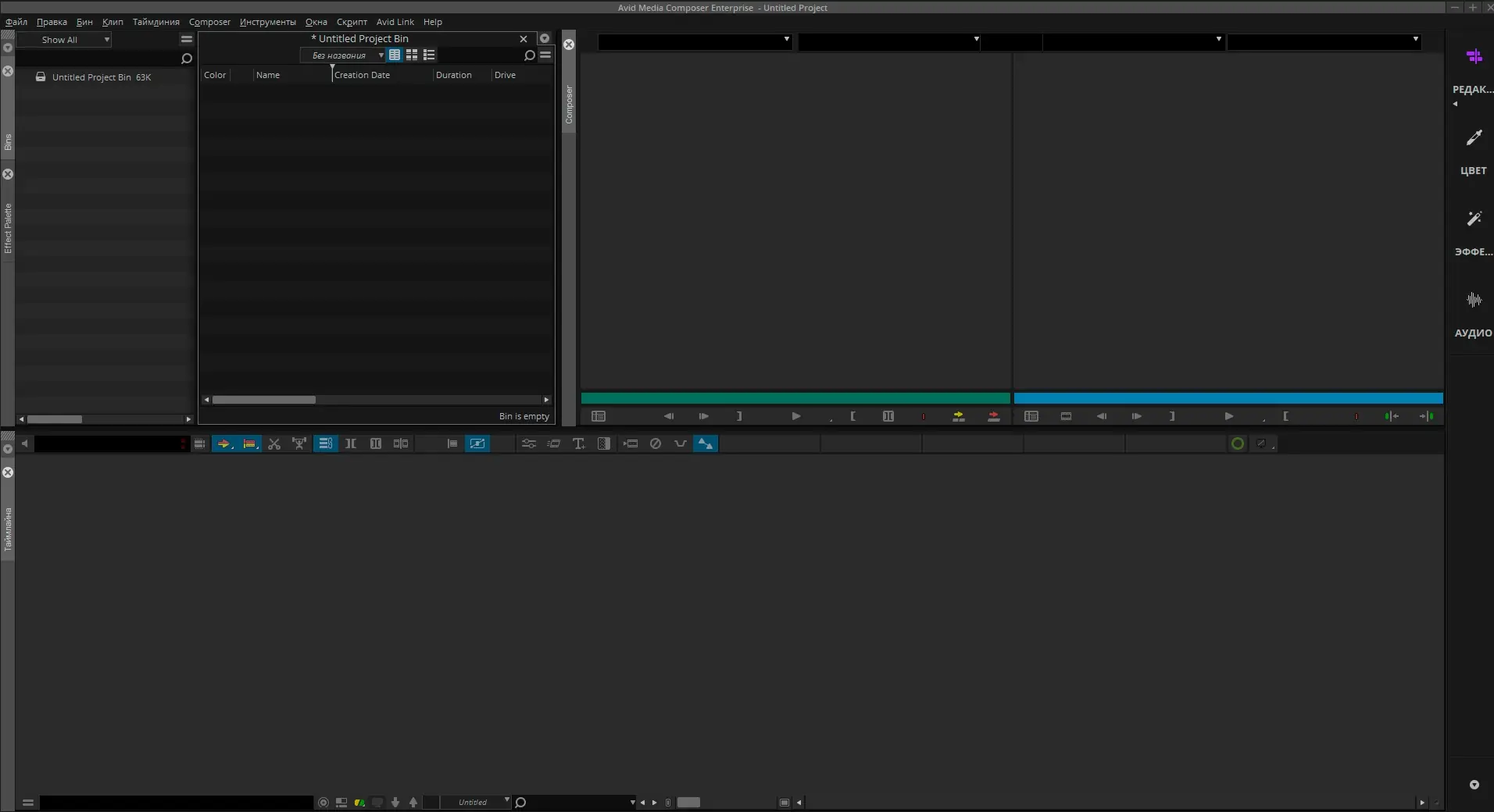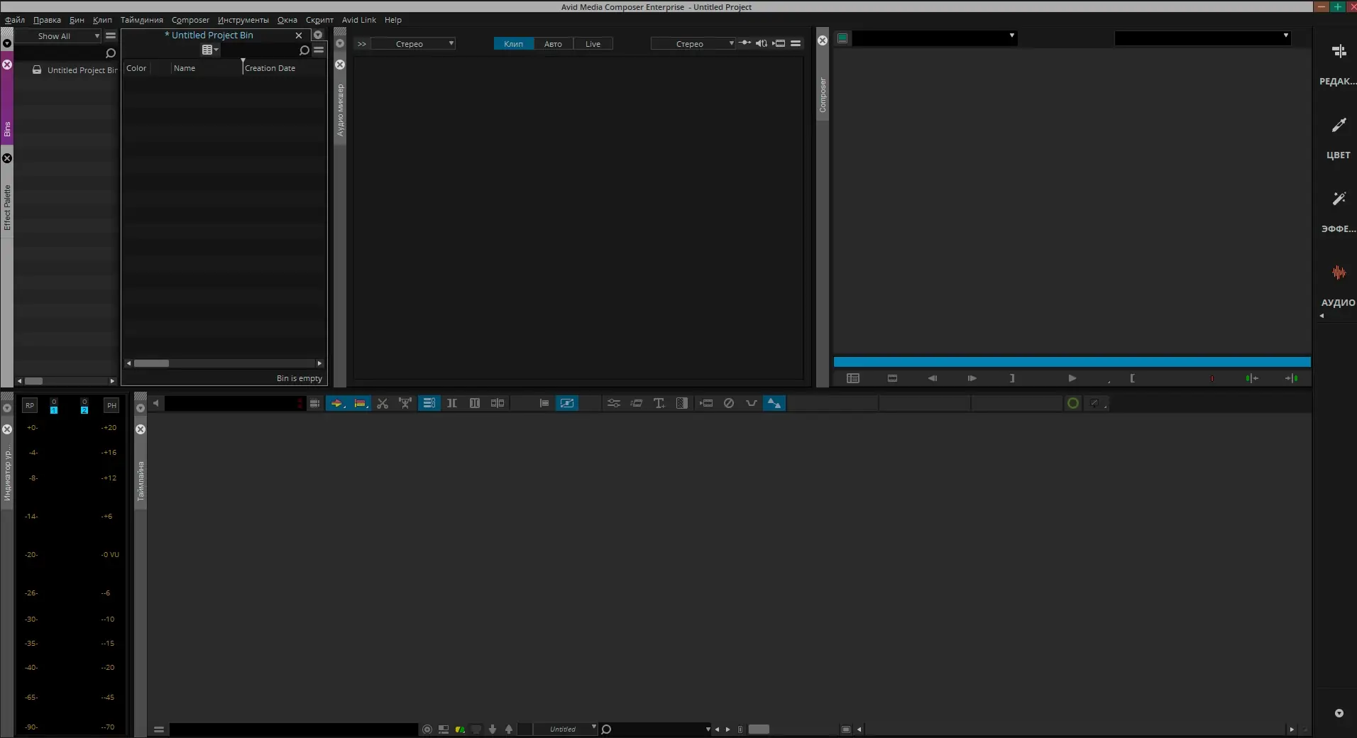 Интерфейс Avid Media Composer построен вокруг концепции проектов, бинов и временных шкал, что позволяет организовать работу с материалом максимально логично. Начинается процесс с импорта медиафайлов, которые автоматически индексируются и становятся доступными для поиска по метаданным. Далее пользователь создаёт последовательности, добавляя клипы на таймлайн, применяя эффекты, корректируя цвет и звук.