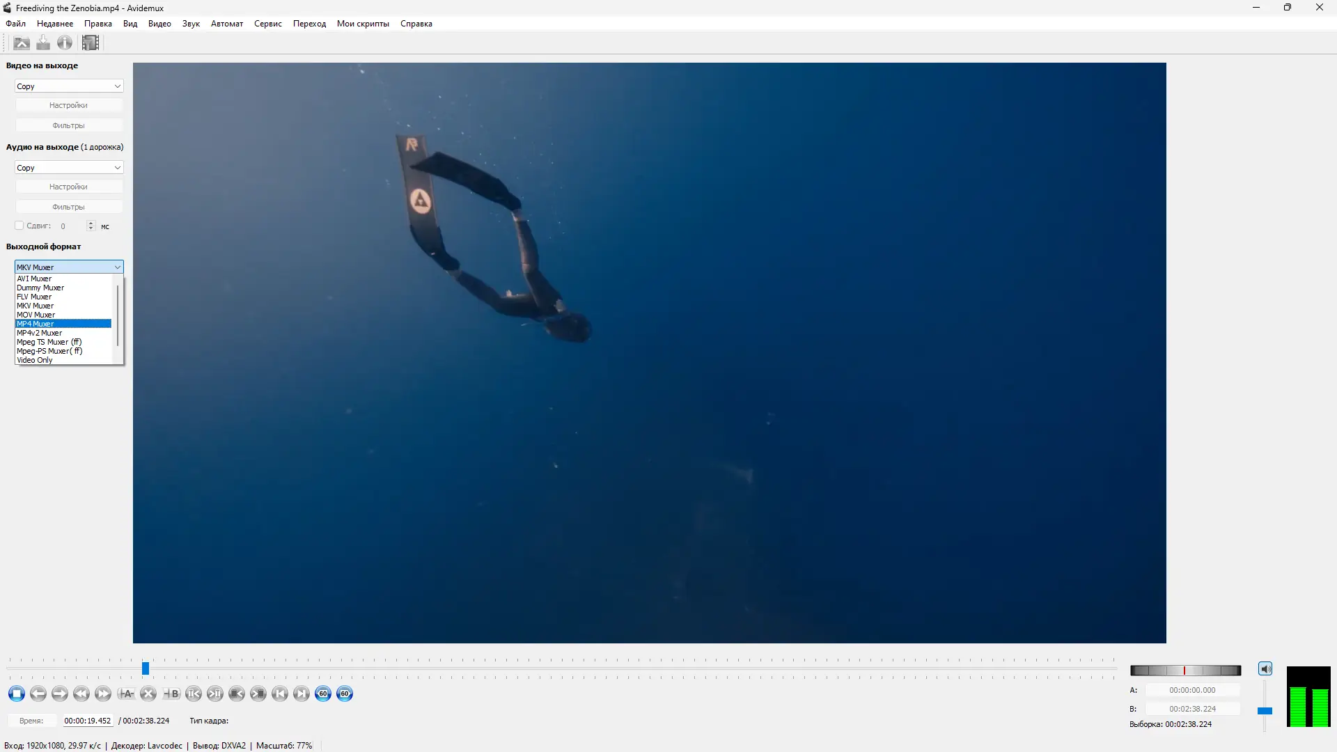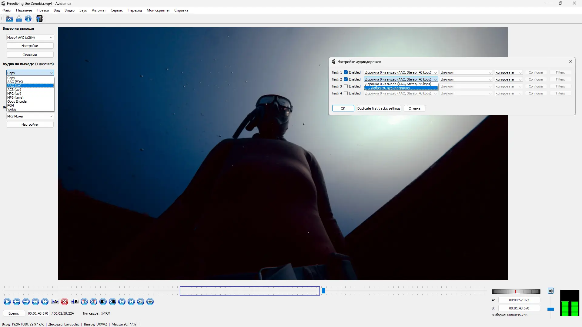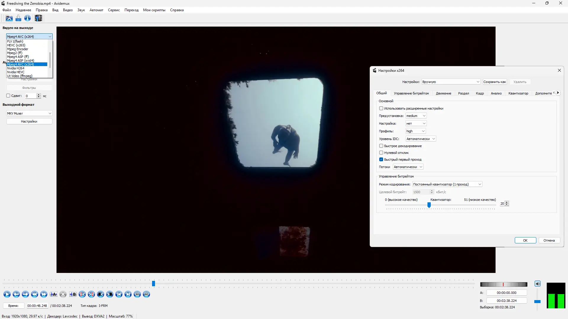 Интерфейс Avidemux интуитивно понятен: после загрузки видеофайла пользователь может выделить нужные участки с помощью маркеров A и B, выполнить обрезку и сохранить результат. Для кодирования доступны предустановленные профили под популярные устройства, такие как iPhone, PSP или Zune, что упрощает адаптацию видео под конкретную платформу. Также можно настраивать параметры кодирования вручную, выбирая видео- и аудиокодеки, битрейт, разрешение и другие характеристики.