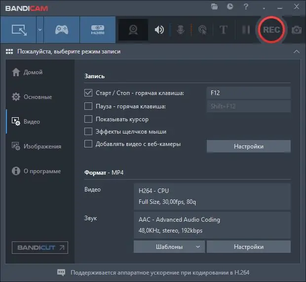 Bandicam сочетает в себе высокую производительность, минимальное потребление ресурсов и широкие возможности настройки параметров записи.