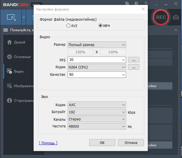 - Поддержка аудиокодеков MP2 и PCM для записи звука с микрофона или системного аудио
