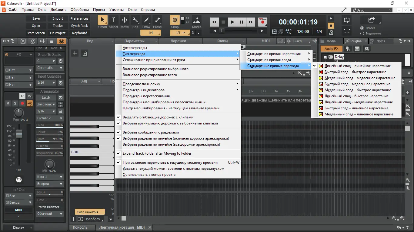 - Поддержка широкого спектра аудиоинтерфейсов и MIDI-устройств.