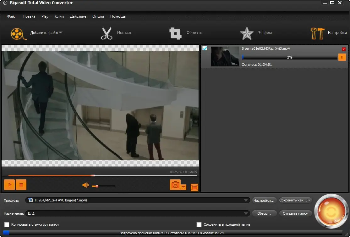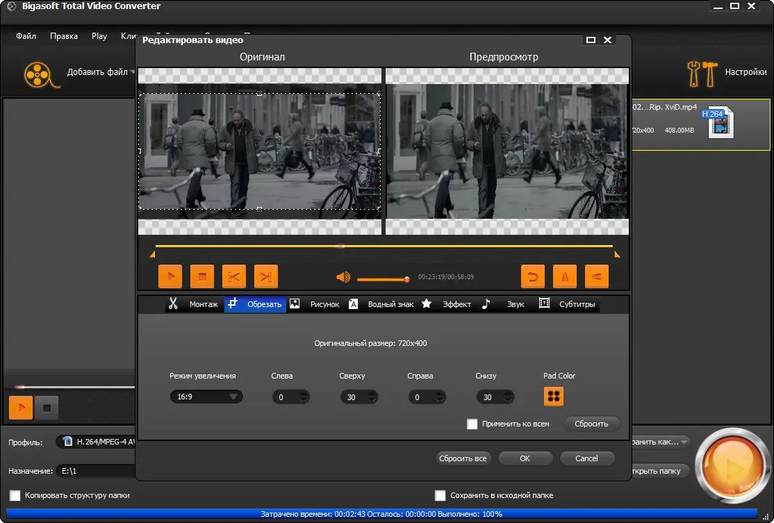 Bigasoft Total Video Converter представляет собой многофункциональный инструмент для преобразования цифрового видео и звука. Он совмещает в себе возможности видеоконвертера, аудиоконвертера и редактора, обеспечивая гибкость при работе с медиафайлами. Программа поддерживает более 40 входных форматов и позволяет конвертировать их в более чем 30 популярных форматов, включая AVI, MP4, MKV, WMV, MOV, FLV, 3GP и H.264. Особое внимание уделено поддержке высококачественного видео, включая разрешения 720p, 1080p и 1080i, а также формат AVCHD.