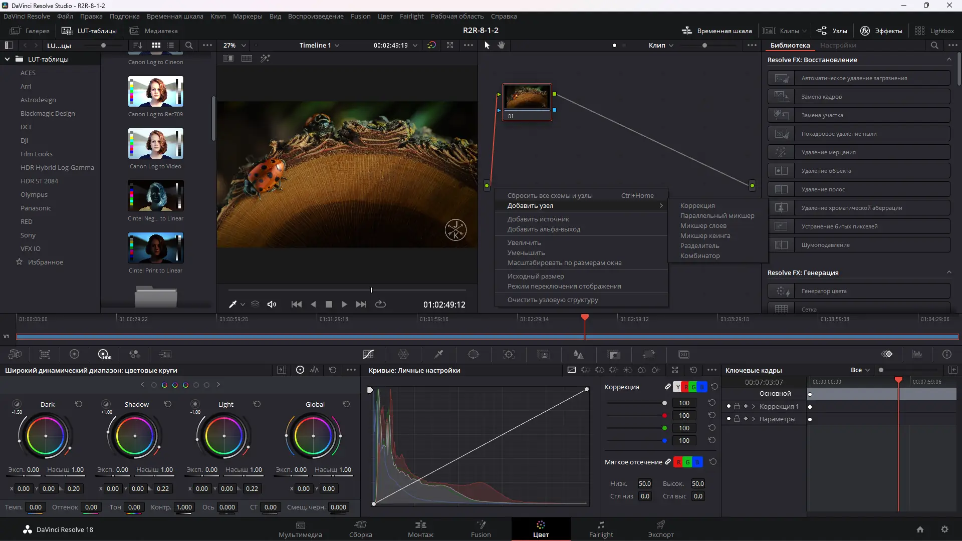 - Продвинутые инструменты цветокоррекции и поддержка HDR