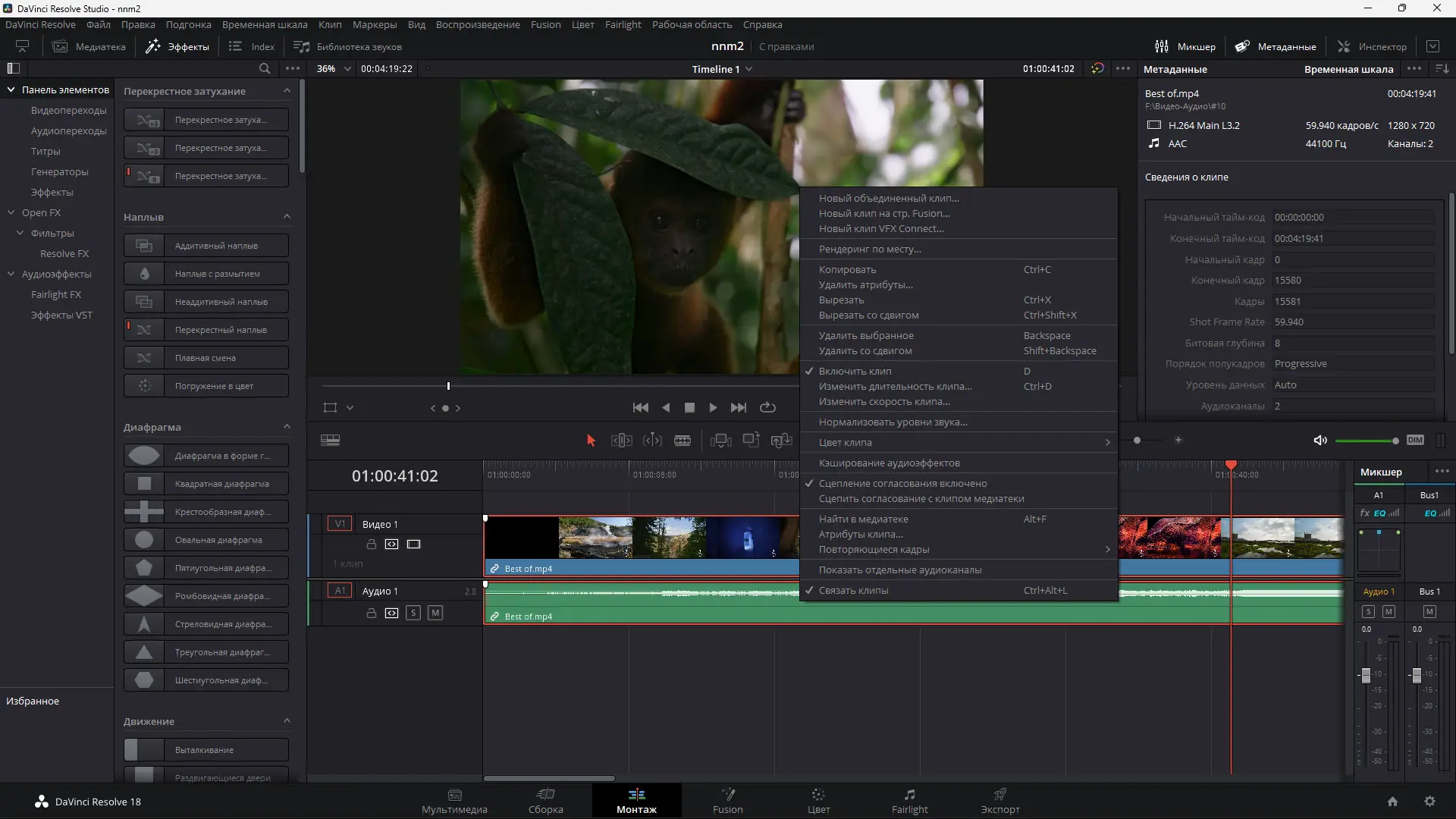 - Полноценная среда для монтажа, цвета, VFX и звука в одном приложении