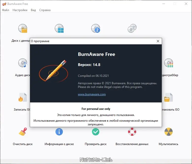 BurnAware Free — это легковесное и надёжное приложение для записи данных на оптические диски. Программа поддерживает создание аудио- и видеодисков, работу с образами, запись с проверкой и мультисессию. Она ориентирована на пользователей, которым нужно просто и быстро записать информацию на CD, DVD или Blu-ray без сложных настроек.