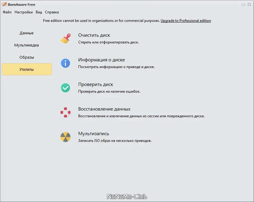 BurnAware Free — это надёжное решение для записи данных на оптические носители, включая CD, DVD и Blu-ray диски. Программа поддерживает широкий спектр функций, начиная от создания резервных копий и заканчивая записью музыкальных и видео дисков. Интерфейс интуитивно понятен, что делает процесс прожига доступным даже для новичков.