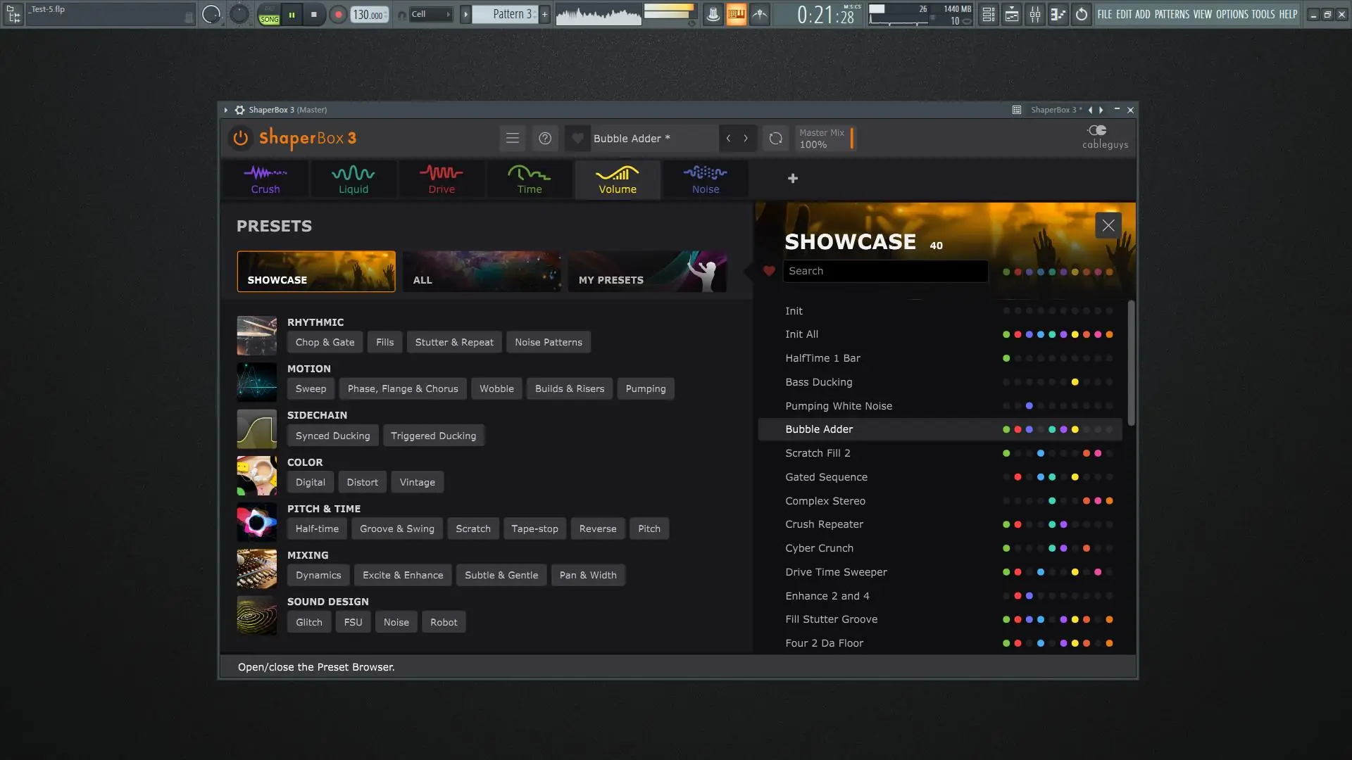 Мощный плагин для создания ритмических эффектов и динамического редактирования звука в реальном времени. Cableguys — ShaperBox объединяет девять инновационных аудиоэффектов в одном интерфейсе, обеспечивая точное управление формой сигнала, синхронизацией с темпом и глубокой модуляцией. Идеальное решение для электронной музыки, саунд-дизайна и профессионального микширования.