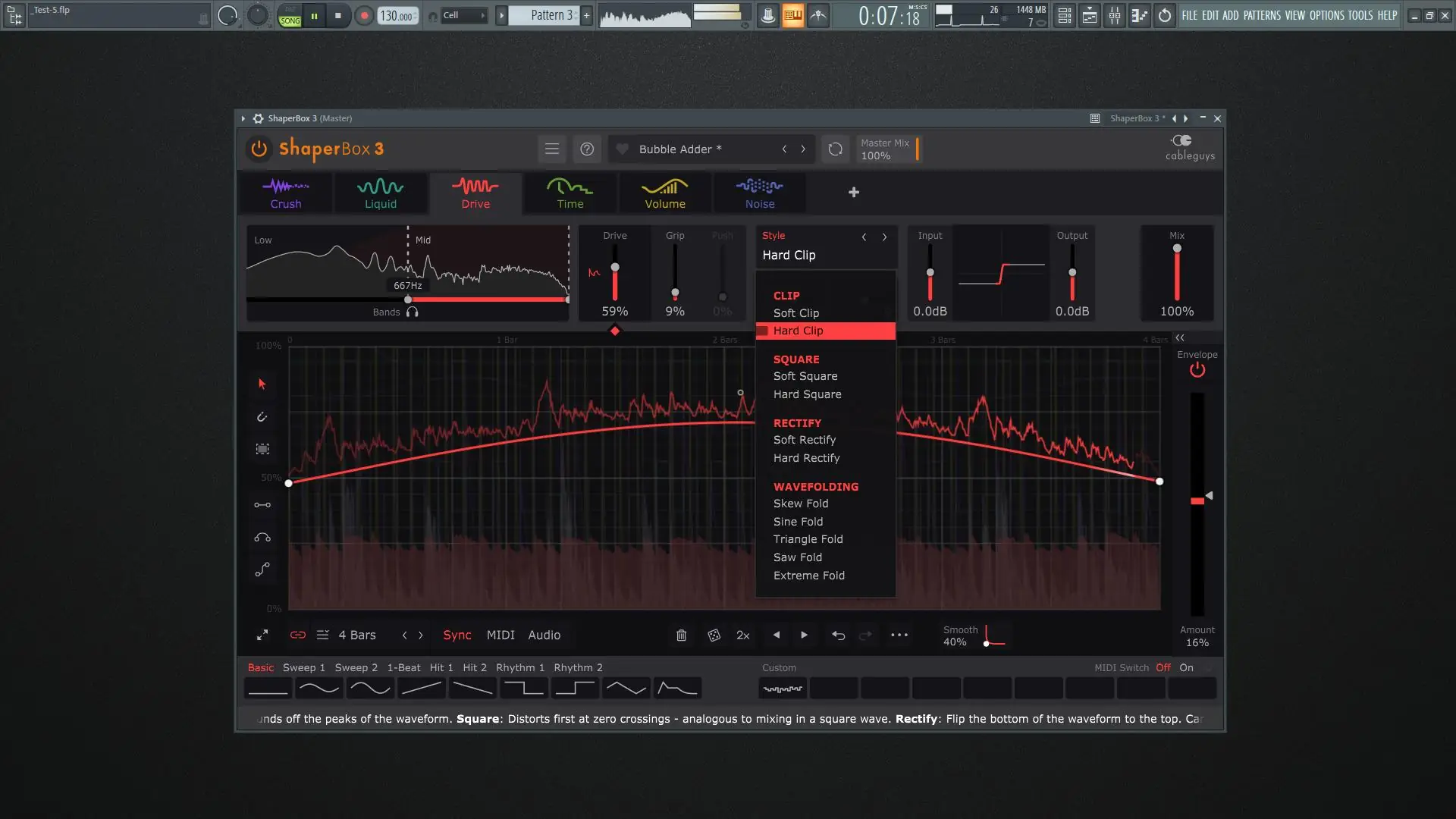 ShaperBox представляет собой комплексный аудиопроцессор, разработанный для музыкантов, продюсеров и саунд-дизайнеров, стремящихся к максимальному контролю над ритмической структурой и динамикой звука. В основе программы лежит концепция визуального моделирования эффектов с помощью графических кривых, которые можно настраивать с высокой точностью. Каждый из девяти встроенных эффектов — Volume, Pan, Width, Filter, Crush, Drive, Noise, Liquid и Time — работает как самостоятельный шейпер, преобразующий сигнал в зависимости от заданного паттерна.