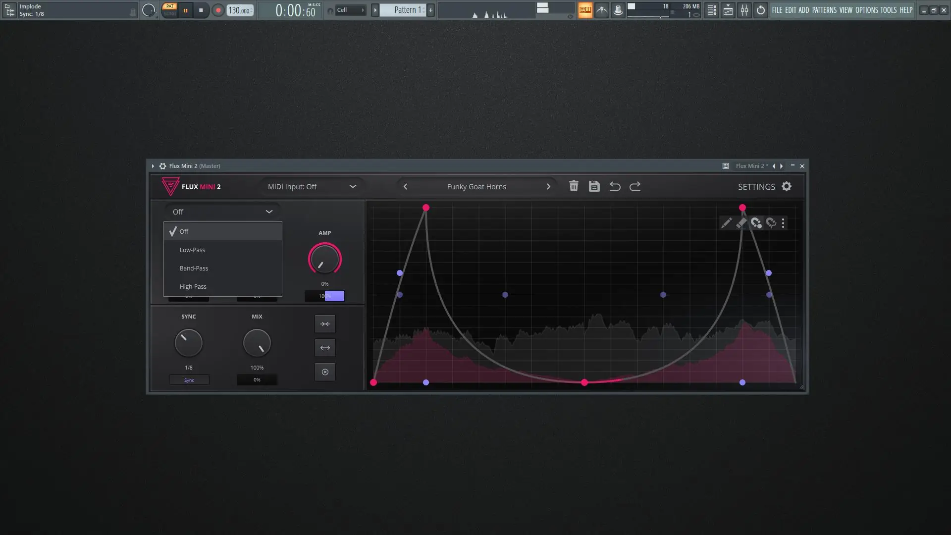 Использование Flux Mini 2 начинается с загрузки плагина в вашей цифровой аудиостанции. После этого можно открыть редактор графика и вручную нарисовать форму волны, которая будет управлять выбранными параметрами. Каждый параметр — срез фильтра, резонанс, амплитуда и микс — имеет отдельный ползунок глубины модуляции, позволяя точно настраивать интенсивность эффекта. График можно зафиксировать по времени в миллисекундах или привязать к тактовой сетке проекта для идеальной синхронизации с остальными элементами композиции.