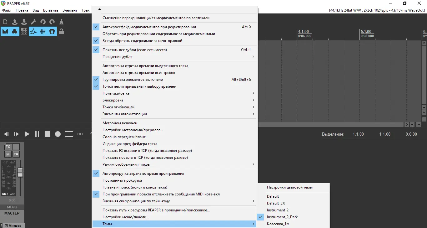 Интерфейс Cockos REAPER построен на принципе модульности, что позволяет пользователям настраивать рабочее пространство под конкретные задачи. Начинающим поможет стандартная раскладка, включающая таймлайн, микшер и браузер медиафайлов, а продвинутым — возможность создания собственных макросов и скриптов. Управление осуществляется как через графический интерфейс, так и с помощью расширенной системы горячих клавиш, которую можно модифицировать по своему усмотрению.
