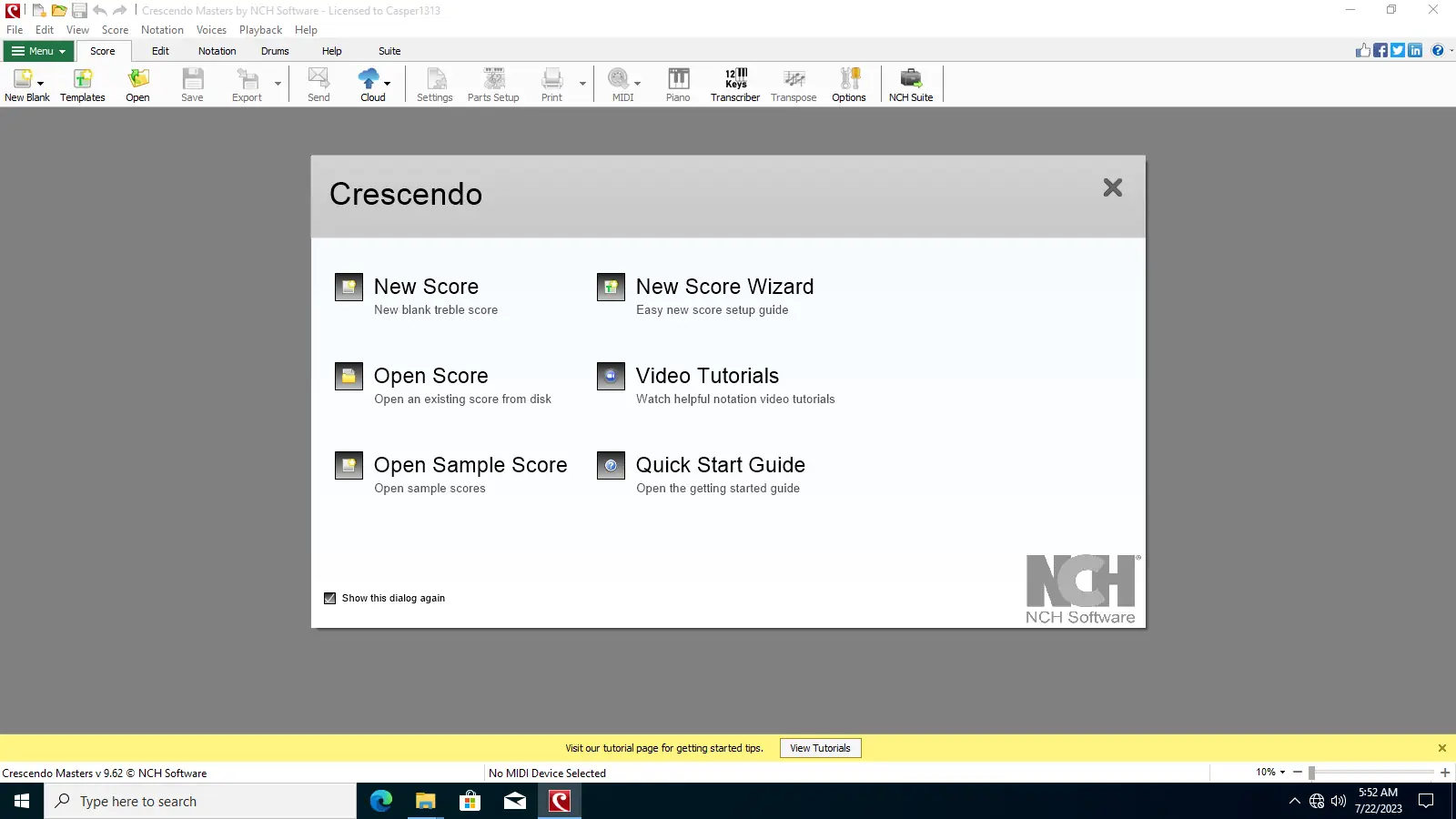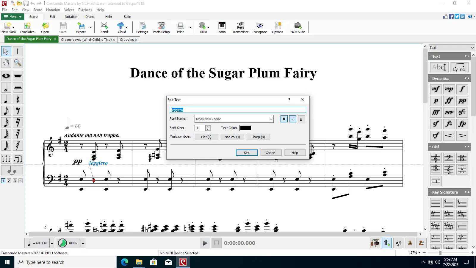 Crescendo Music Notation Editor предоставляет удобную среду для написания музыки в цифровом формате, позволяя создавать профессиональные партитуры без необходимости ручного переписывания или многократной проверки. Интерфейс ориентирован на минимизацию временных затрат при вводе нот, тактов и музыкальных знаков. Пользователь может выбрать тип нотоносца — скрипичный, басовый или хоровой, а также задать тональность и размер, что особенно важно для точного воспроизведения композиции.