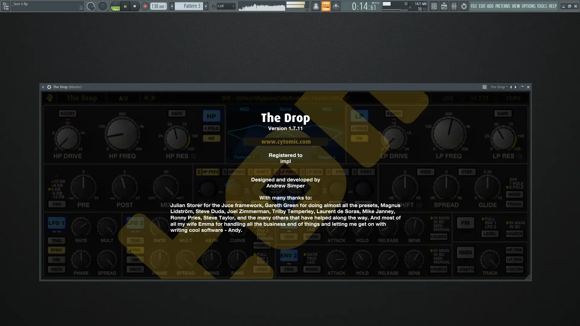 Использование Cytomic The Drop интуитивно понятно благодаря продуманному интерфейсу, который масштабируется без потери качества. После установки плагина его можно загрузить в любой DAW, поддерживающий формат VST или AU. Для активации требуется сгенерировать код авторизации через встроенный механизм, после чего использовать сторонний генератор лицензии для получения файла активации.