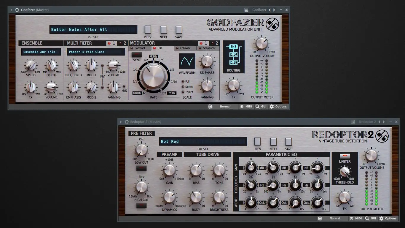 - Decimort 2 эмулирует битовый шум и снижение разрядности, характерные для старых сэмплеров, придавая лупам и сэмплам тёплую винтажную окраску.