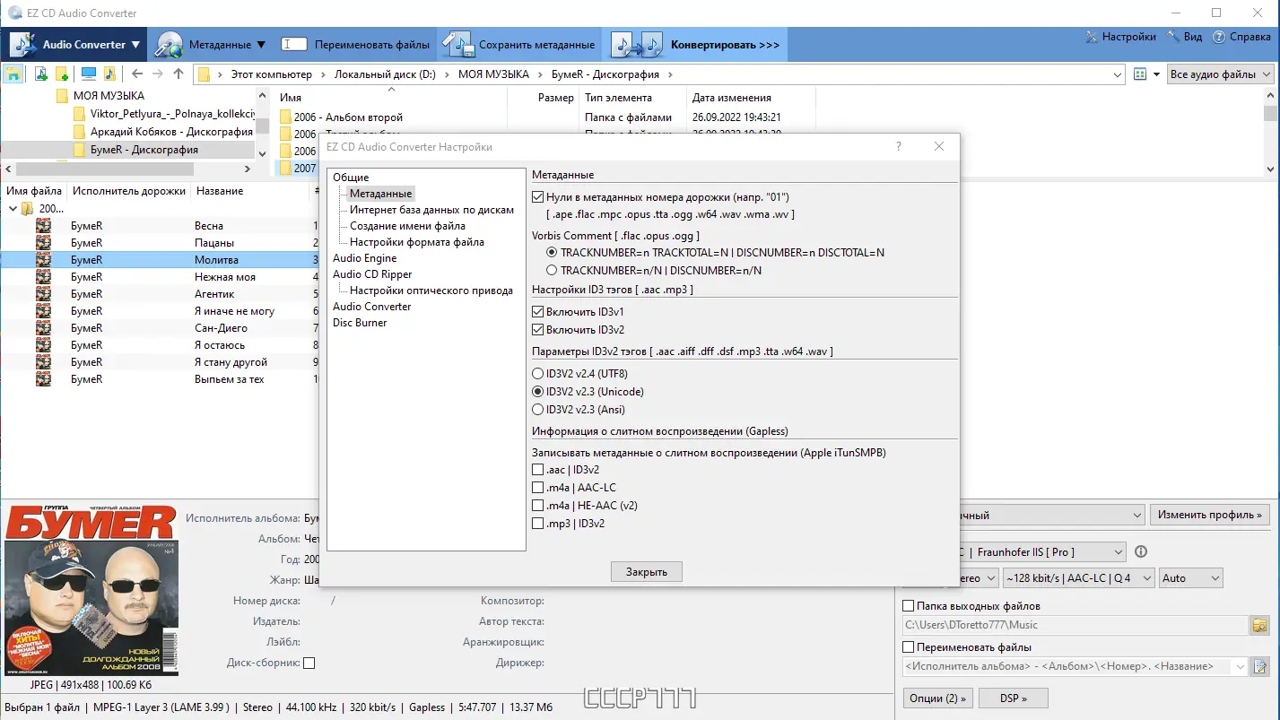 EZ CD Audio Converter — это многофункциональное приложение, предназначенное для преобразования аудио-CD в цифровые файлы без потери качества. Программа поддерживает широкий диапазон форматов, включая MP3, FLAC, WAV, AAC, Ogg Vorbis, WMA и другие. Она позволяет не только извлекать звук с физических дисков, но и конвертировать аудиофайлы из одного формата в другой с гибкими настройками битрейта, частоты дискретизации и глубины разрядности.