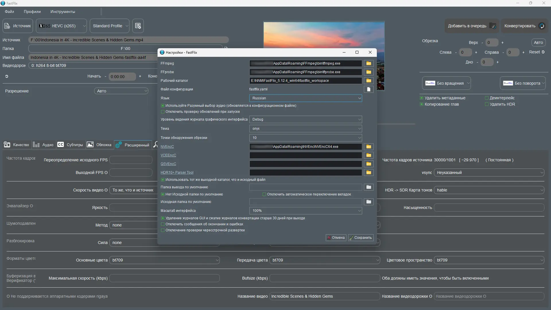 FastFlix — это удобный графический интерфейс для кодирования видео с поддержкой современных стандартов, включая сохранение метаданных HDR10 для HEVC и x265, а также перспективных решений на базе AV1. Программа работает в связке с FFmpeg, обеспечивая доступ к широкому спектру кодеков и параметров сжатия. Подходит как для новичков, так и для опытных пользователей, которым важна точная настройка процесса конвертации.
