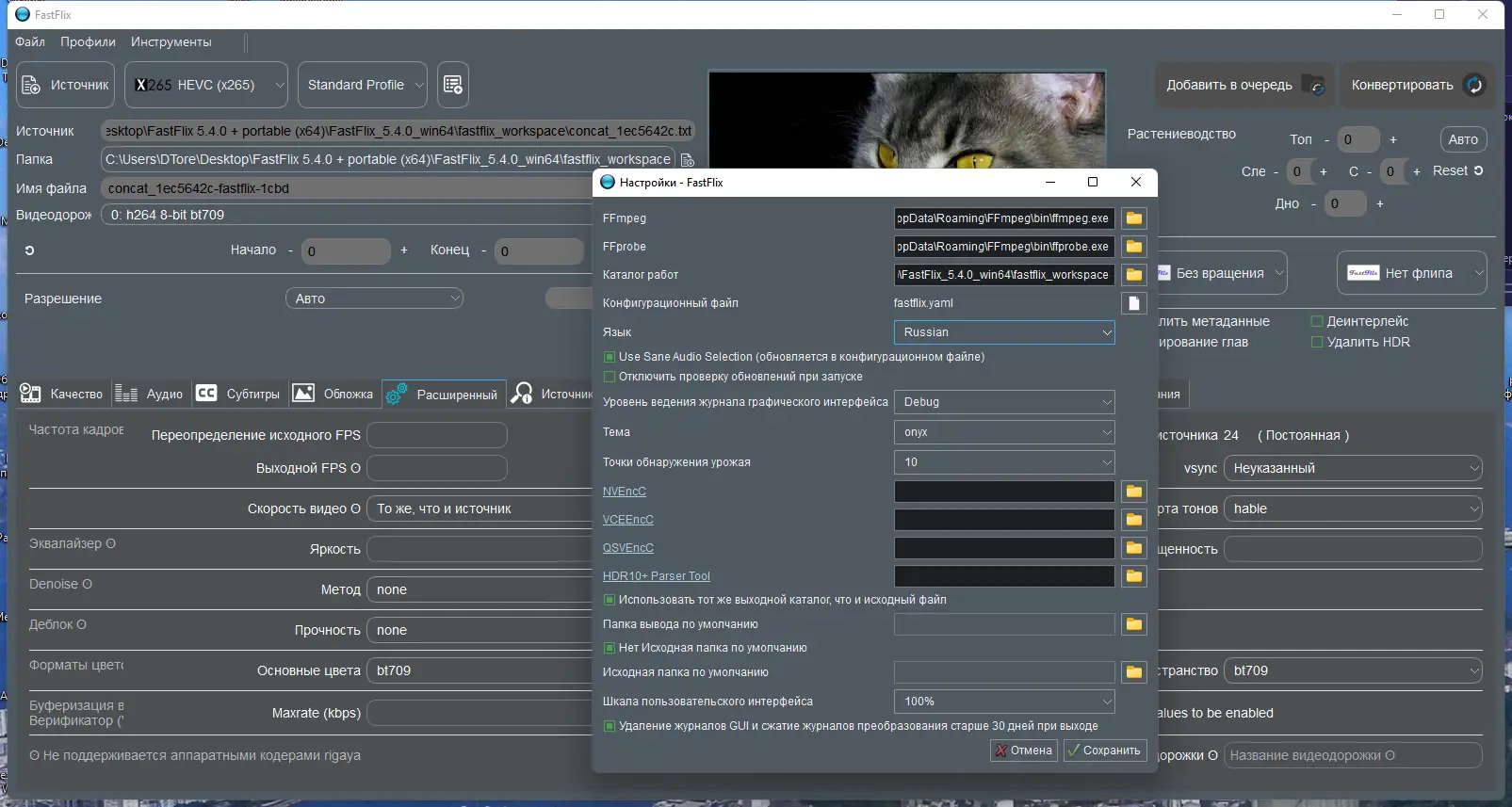 FastFlix представляет собой оболочку для FFmpeg, которая делает процесс кодирования видео максимально доступным. Вместо работы в командной строке пользователь получает визуальный интерфейс с логично организованными вкладками и настройками. Программа поддерживает работу с такими кодировщиками, как x265, NVEncC HEVC и VCEEncC HEVC, а также запланирована интеграция с библиотеками AV1 для будущих версий.