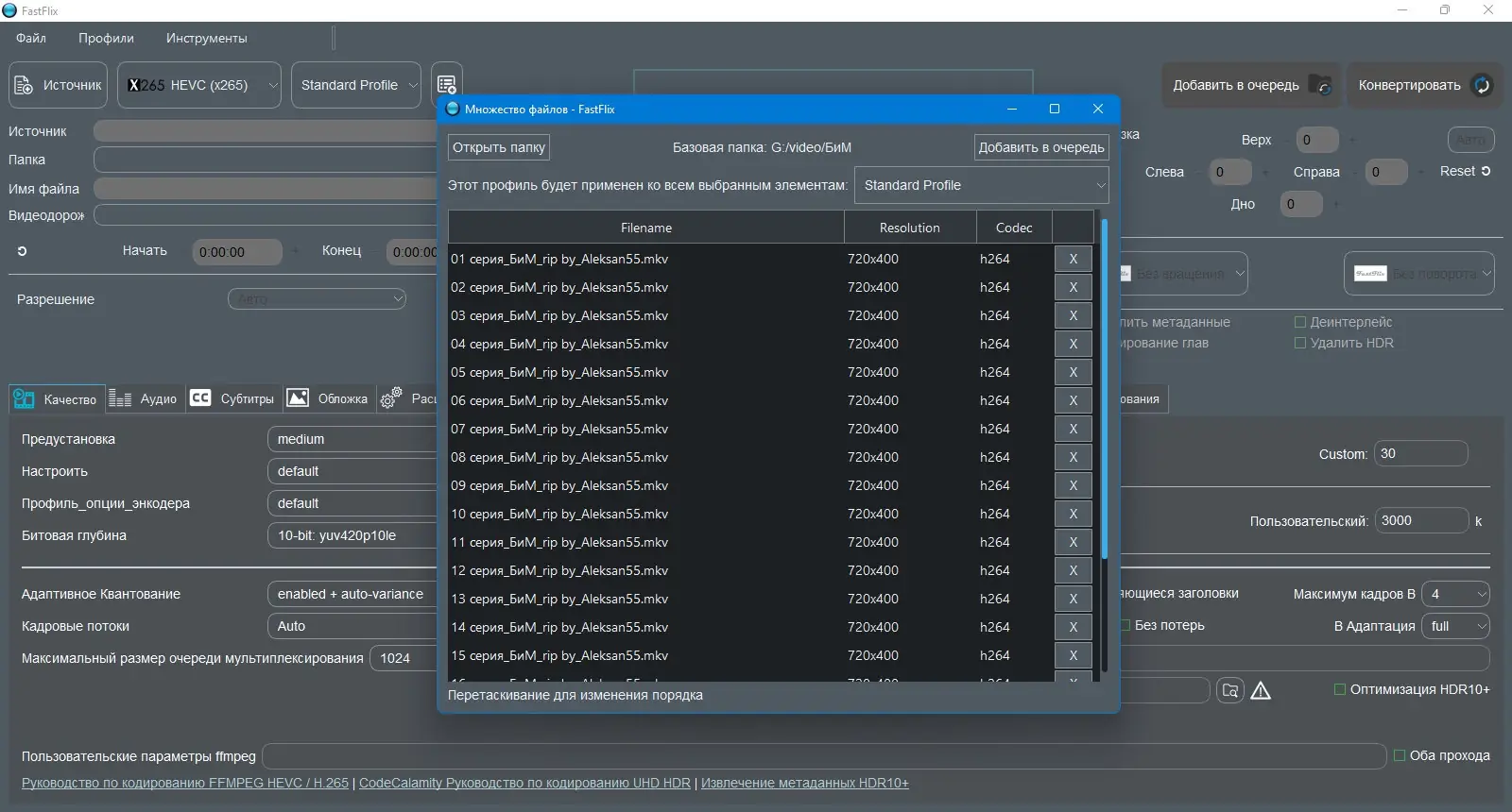 FastFlix — это интуитивно понятный графический интерфейс для кодирования видео, совмещающий мощь FFmpeg с удобством современного приложения. Программа поддерживает работу с HDR10, HEVC и планируемую интеграцию AV1, обеспечивая качественную конвертацию без потери важных метаданных. Подходит как для новичков, так и для опытных пользователей, стремящихся к точной настройке параметров видео.