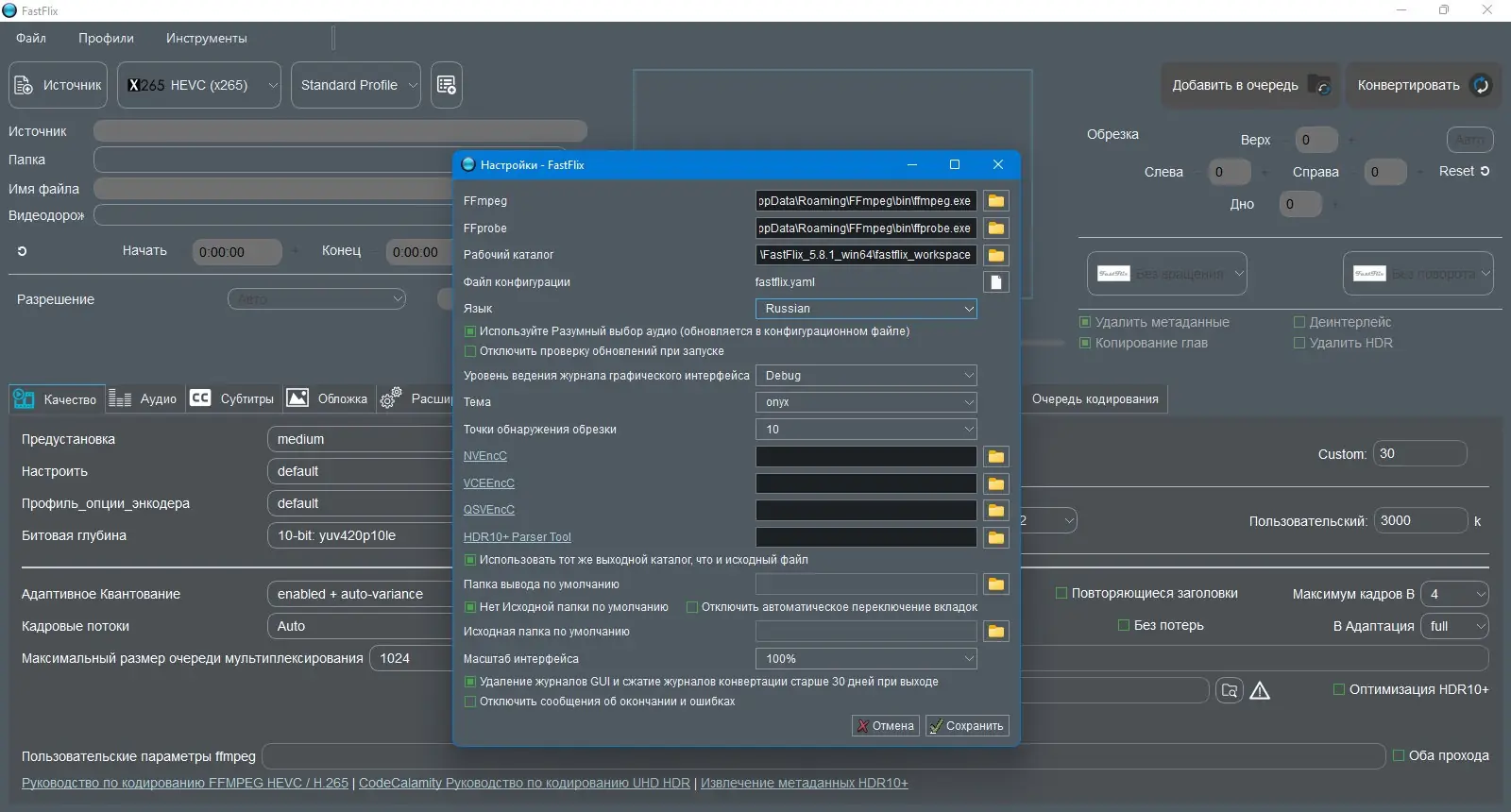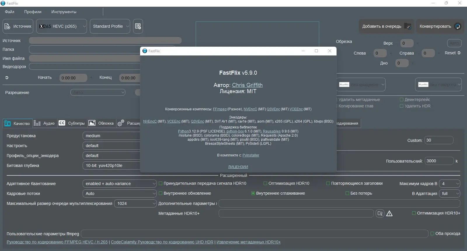 FastFlix — это интуитивно понятное приложение для перекодирования видео с поддержкой современных форматов и сохранением HDR10-метаданных. Программа работает на базе FFmpeg и совместима с различными аппаратными и программными кодировщиками. Подходит как для новичков, так и для пользователей, которым нужны точные настройки при конвертации.