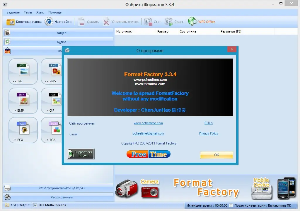Format Factory — это мощный и универсальный конвертер мультимедиа, предназначенный для преобразования видео, аудио и графических файлов в различные форматы. Программа поддерживает широкий спектр кодеков и позволяет не только конвертировать, но и восстанавливать повреждённые файлы, оптимизировать размеры данных и настраивать параметры вывода. С её помощью можно легко адаптировать контент для различных устройств, включая смартфоны, планшеты и портативные медиаплееры.
