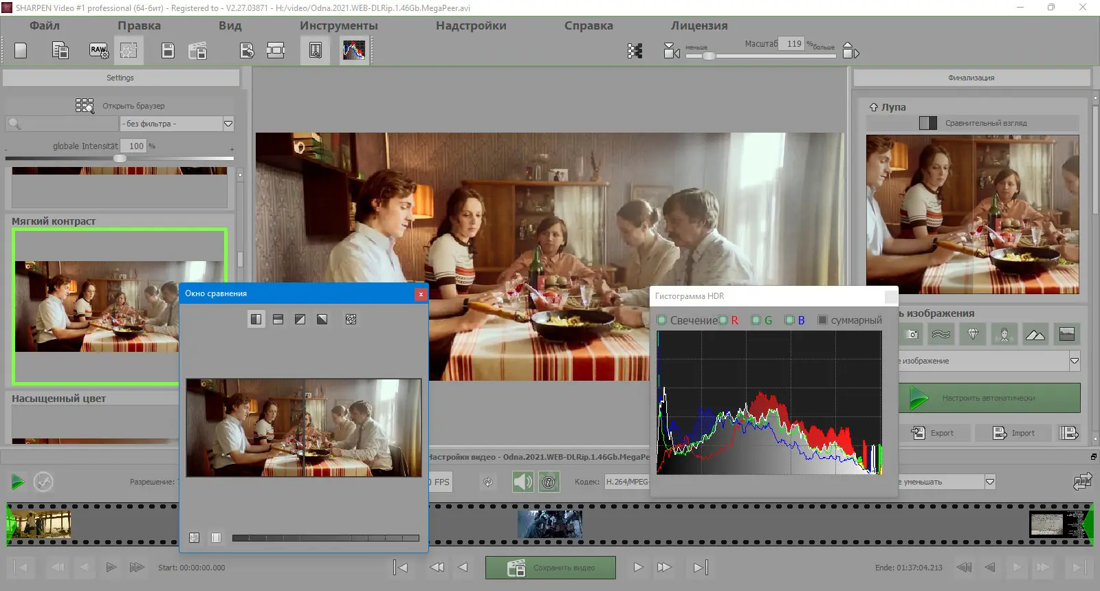 Программа эффективно справляется с артефактами сжатия, шумами и дымкой, сохраняя естественность изображения.