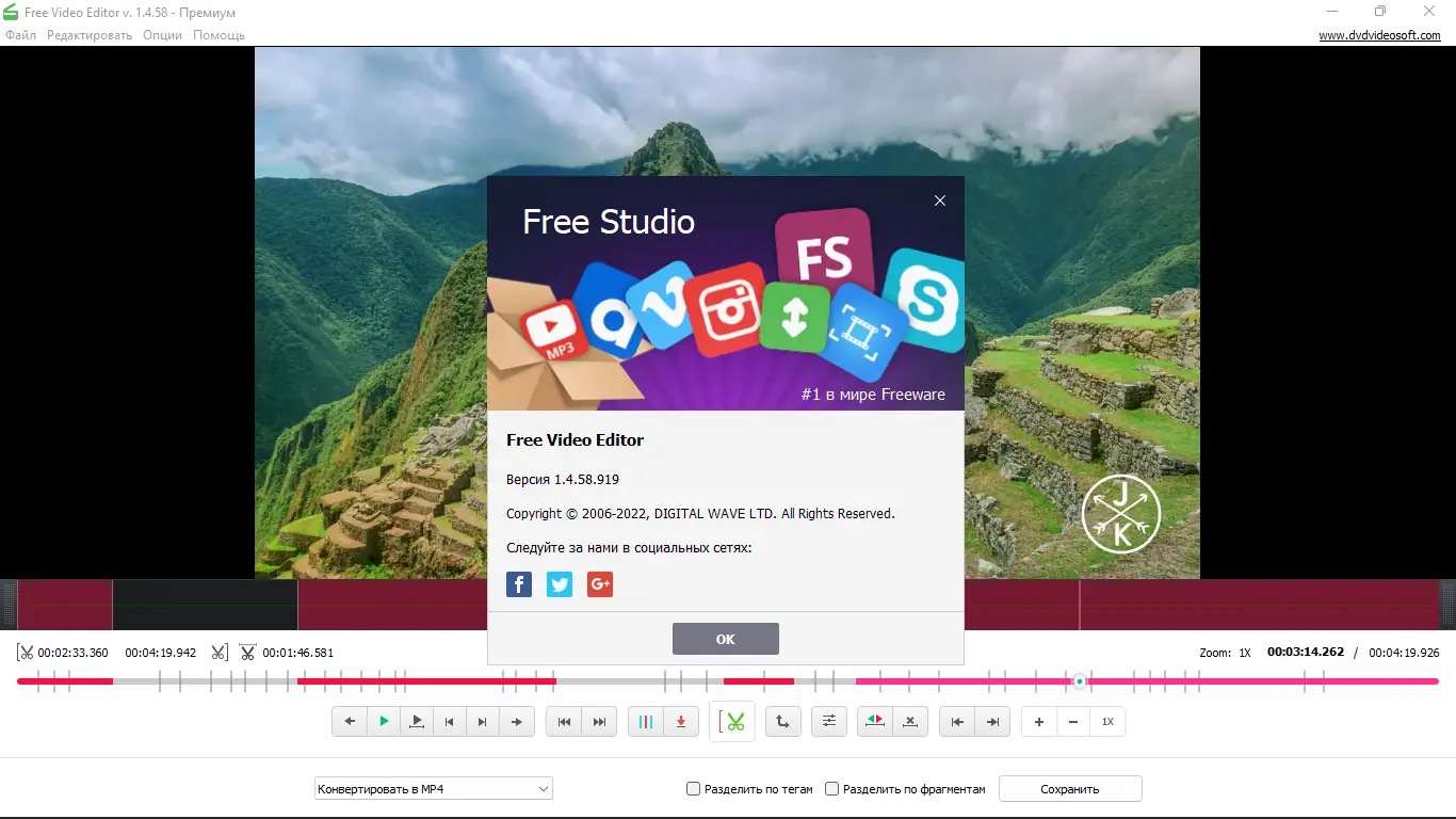 Free Video Editor — это легкая и эффективная утилита для обрезки видео без потери качества. Программа позволяет быстро удалять ненужные фрагменты из видеозаписей, сохраняя исходный формат и параметры файла. Поддержка популярных видеоформатов делает её универсальным решением для базового редактирования.