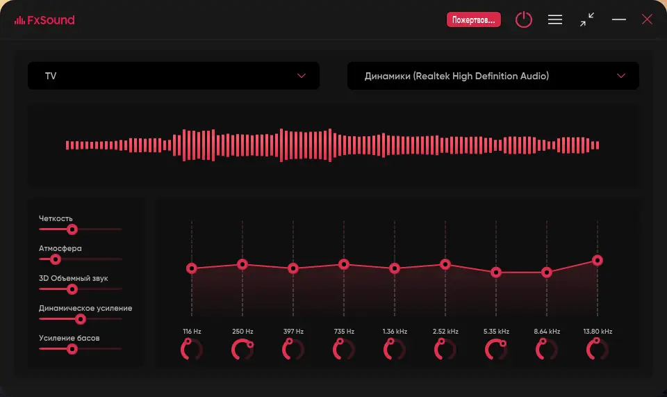 FxSound, ранее известная как DFX Audio Enhancer, представляет собой современный аудио-улучшитель, способный трансформировать звучание любого контента на ПК. Программа вмешивается в процесс вывода звука на уровне системы, обрабатывая аудиопоток без задержек и потерь в качестве. Это позволяет добиться более насыщенного, глубокого и объёмного звучания, независимо от используемого приложения или сервиса.