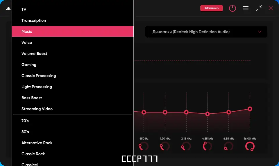 - Наличие пресетов для музыки, игр и стримингового видео упрощает начало использования без необходимости ручной калибровки.