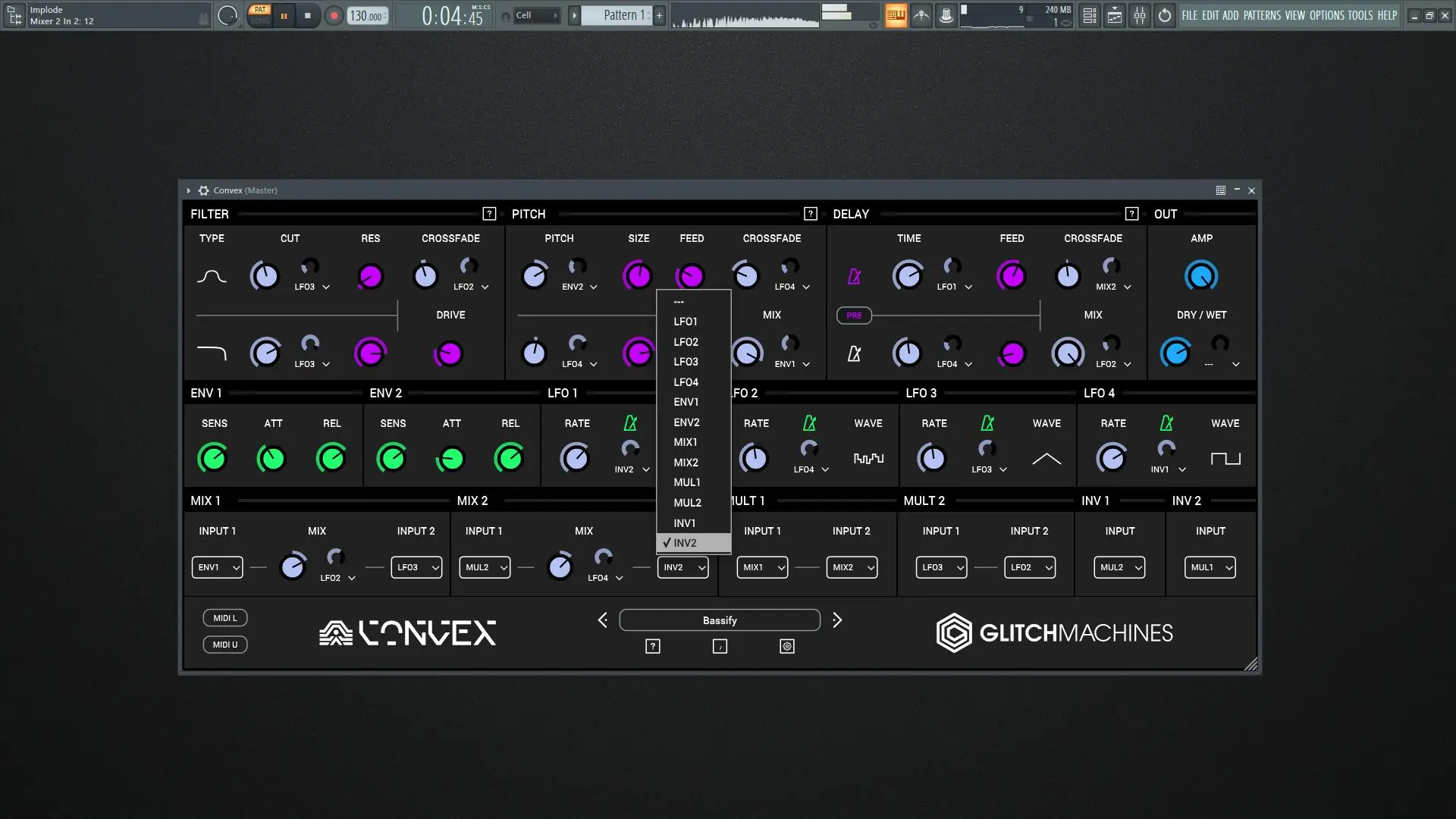 - Dual Mixers, Mults & Inverters — комбинирование и инверсия сигналов модуляции для сложных паттернов.