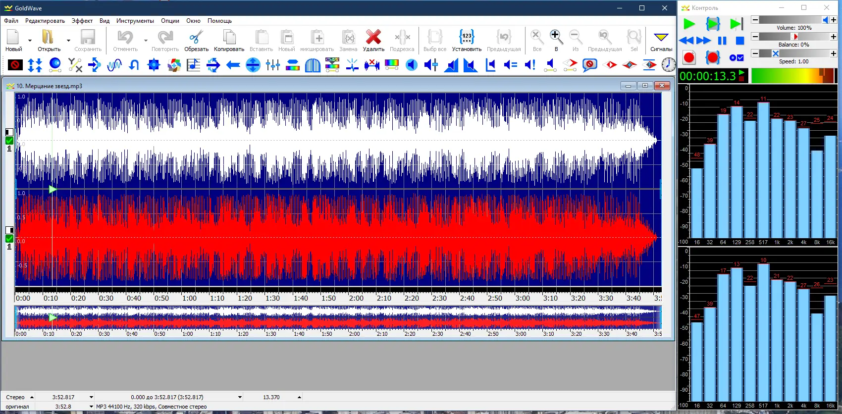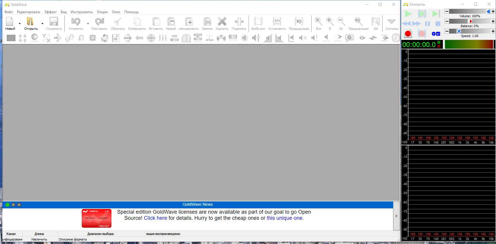 GoldWave — мощный аудио редактор, предназначенный для профессионального и домашнего использования, позволяющий не только воспроизводить и редактировать звуковые файлы, но и проводить их глубокий анализ, конвертировать в различные форматы и восстанавливать повреждённые или устаревшие записи. Программа поддерживает широкий спектр аудиоформатов, включая MP3, WAV, AIFF, AU, OGG и другие, а также предлагает продвинутые инструменты для шумоподавления, настройки эквалайзера и применения эффектов. Благодаря высокой производительности, GoldWave эффективно работает даже с файлами объёмом более 4 Гб.