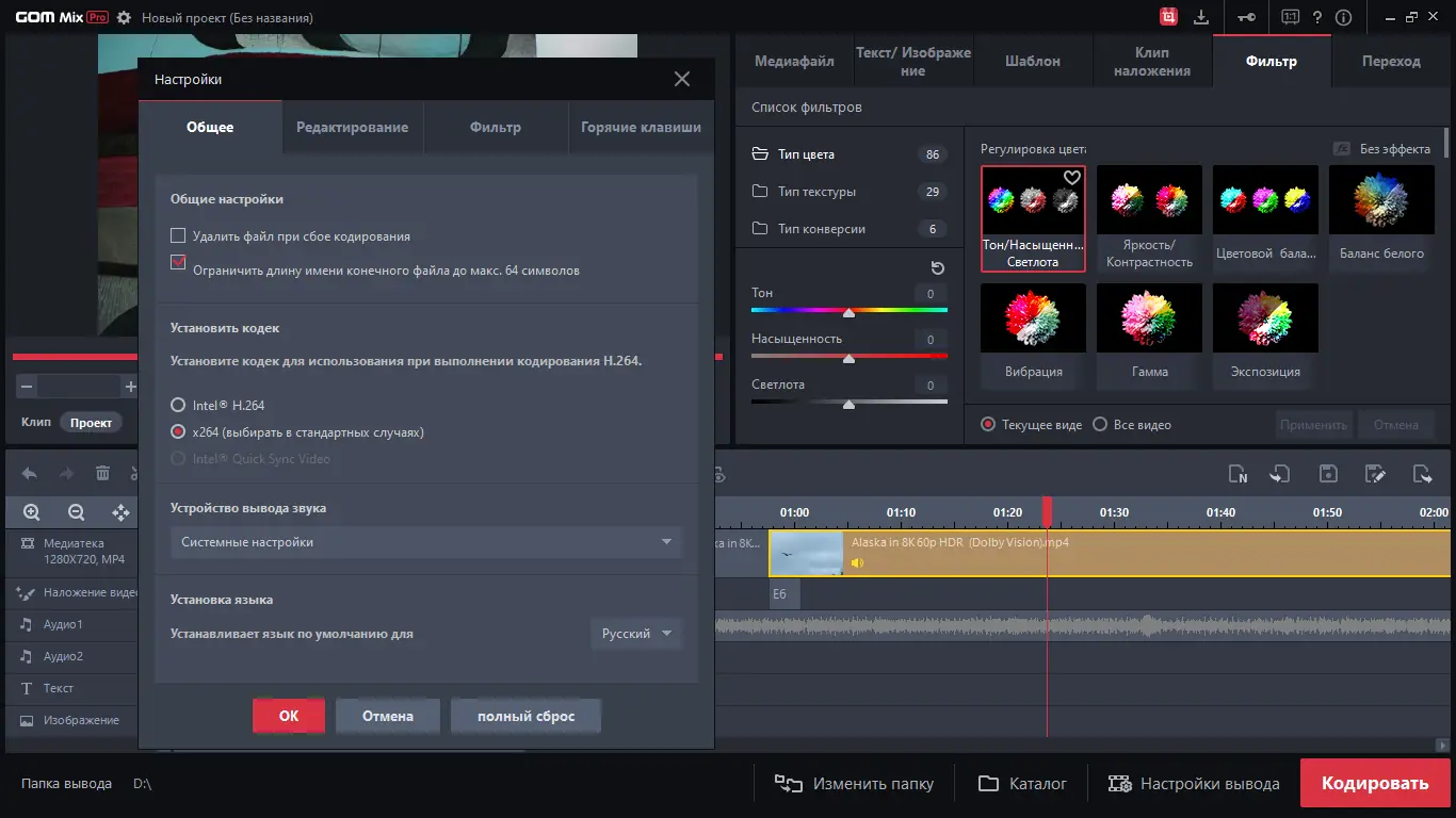 Для начала работы с GOM Mix Pro достаточно запустить приложение и импортировать нужные медиафайлы через простой интерфейс перетаскивания. После добавления видео на монтажную шкалу можно приступать к обрезке, разделению сцен или вставке пауз. Текстовые элементы добавляются через отдельную панель, где можно выбрать стиль, длительность отображения и анимацию появления. Аудиодорожка редактируется независимо, с возможностью наложения нескольких треков и настройки баланса. Завершённый проект кодируется в нужный формат с предварительным просмотром результата, после чего загружается в облачное хранилище или напрямую на YouTube и Facebook.