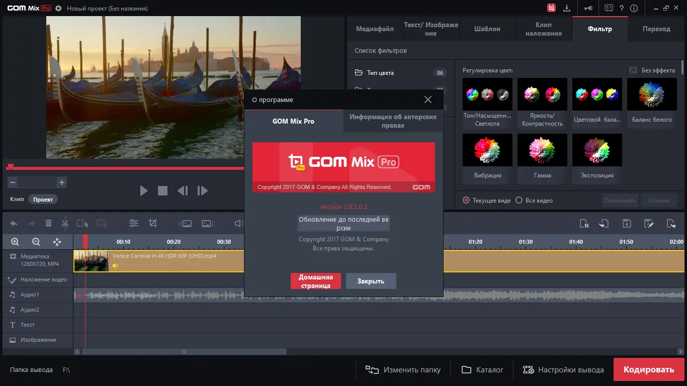 GOM Mix Pro — это универсальный видеоредактор, сочетающий простоту интерфейса и мощные инструменты для монтажа, цветокоррекции, наложения эффектов и публикации видео. Программа подходит как новичкам, так и пользователям со средним уровнем подготовки, обеспечивая широкий функционал без необходимости в сложных настройках. Поддержка множества форматов и встроенные шаблоны ускоряют процесс создания качественного контента.