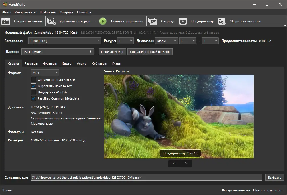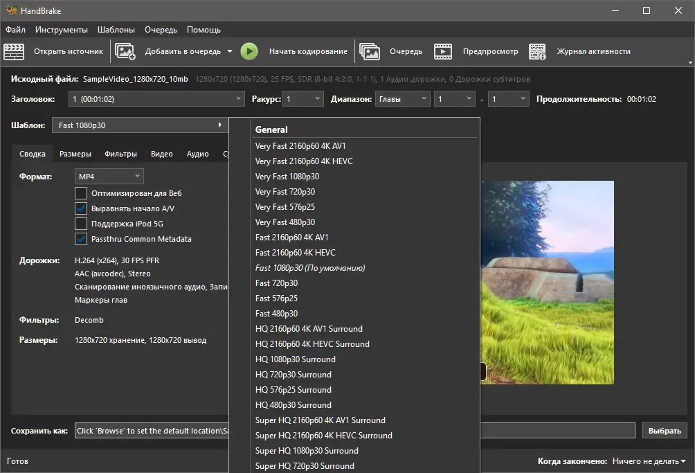 Как пользоваться HandBrake