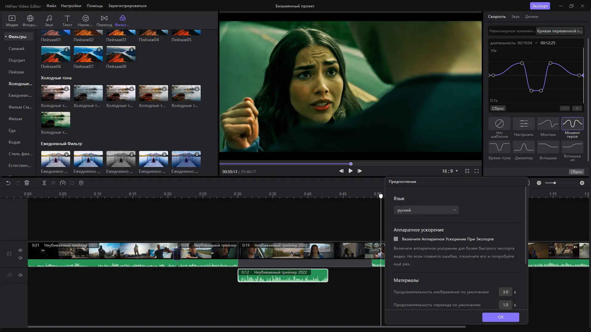 HitPaw Video Editor предлагает интуитивно понятный интерфейс, который позволяет сосредоточиться на творческом процессе, а не на освоении сложных инструментов. Программа поддерживает работу с различными форматами видео, обеспечивая стабильное воспроизведение и чёткое позиционирование клипов на временной шкале. Основным преимуществом является автоматическая привязка элементов с других треков к главному видео, что упрощает синхронизацию аудио, титров и визуальных эффектов.