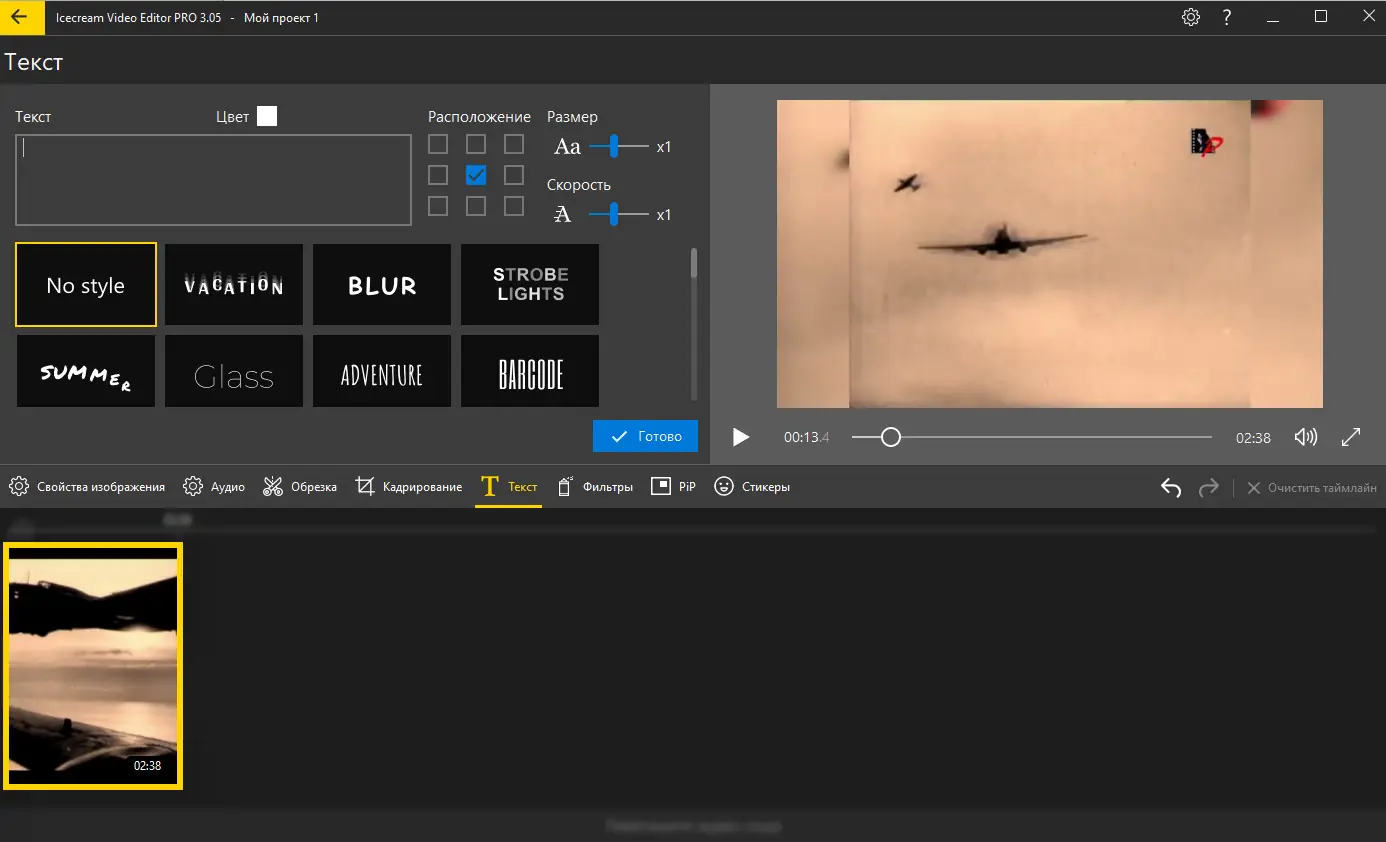 Icecream Video Editor — это удобный инструмент для монтажа видео на платформе Windows, позволяющий объединять фото и видеоматериалы, добавлять переходы, текст, аудиодорожки и эффекты. Программа подходит как для новичков, так и для пользователей с базовыми навыками работы с видео. Интерфейс прост и ориентирован на быстрое создание качественных роликов без необходимости изучать сложные функции.