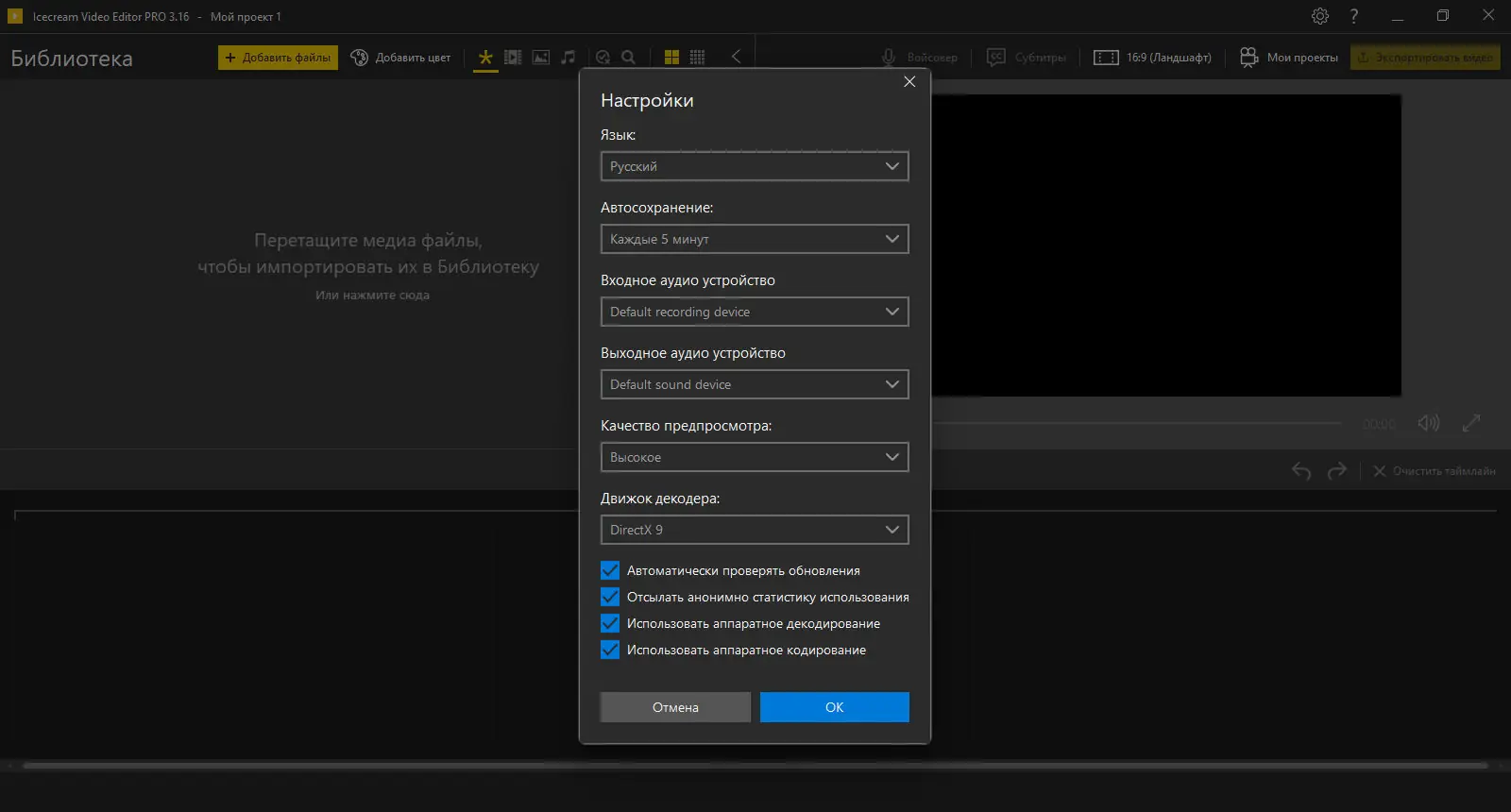 - Интуитивно понятный интерфейс с поддержкой перетаскивания файлов и наглядным таймлайном.