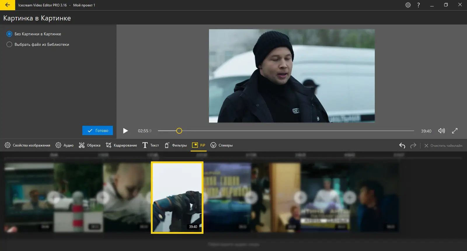 Icecream Video Editor поддерживает экспорт в различных пропорциях — портретную, альбомную и квадратную (1:1), что особенно удобно для публикации в социальных сетях.